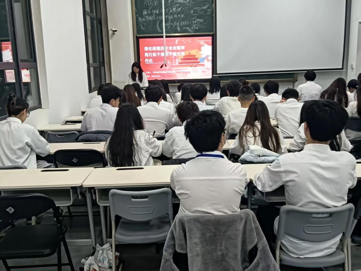 微党课伊始,涂瑞超同学系统传达了习近平总书记在党的二十届四中全会上的重要讲话精神和全会核心要义。涂瑞超同学强调,这次党的二十届四中全会为我们国家未来的发展描绘了清晰的蓝图,特别强调要沿着中国式现代化的道路坚定不移地推进民族复兴。习近平总书记重要讲话思想深刻、意义深远,不仅为国家治理指明了方向,也为我们青年一代的成长提供了重要指引。