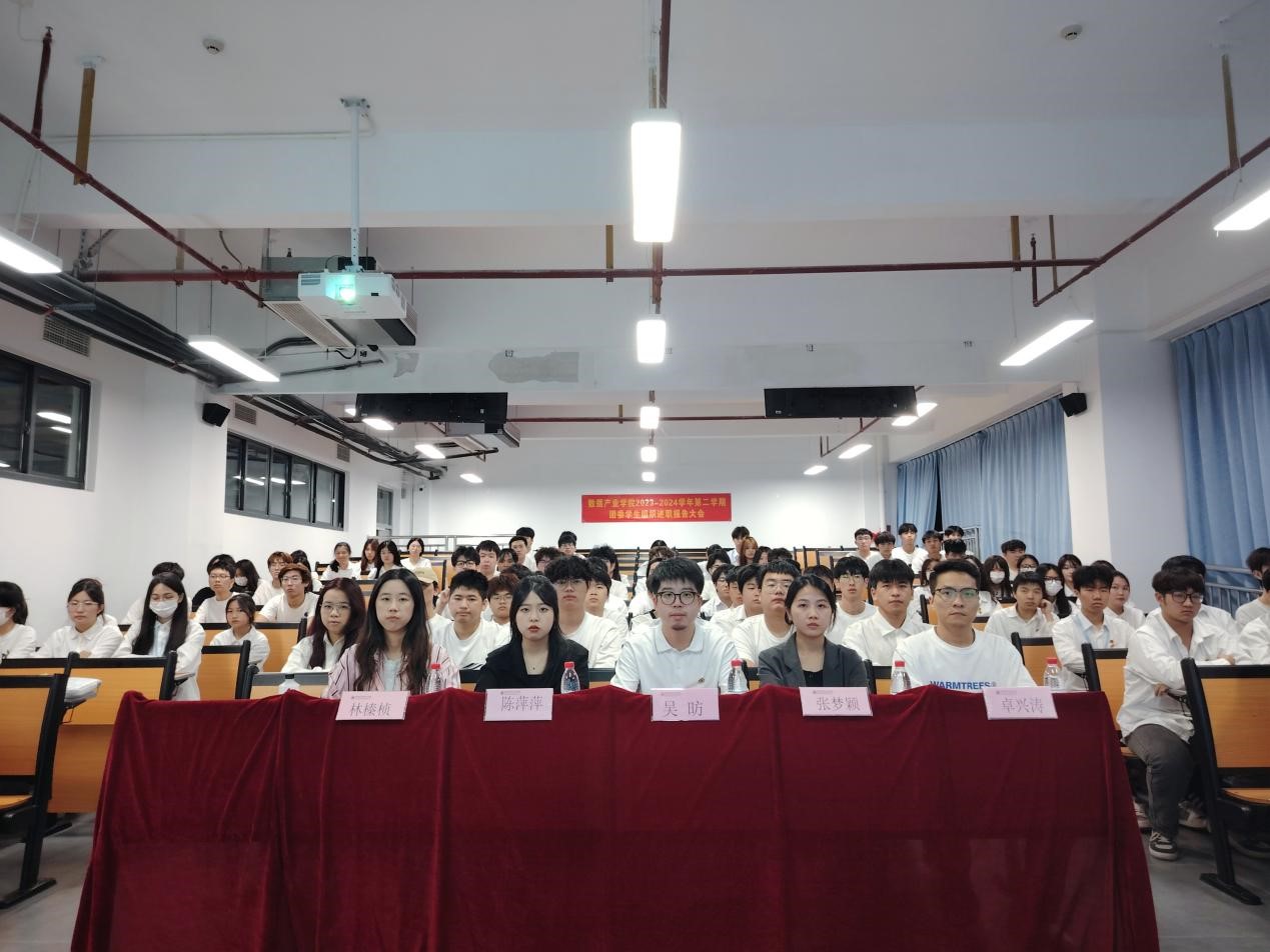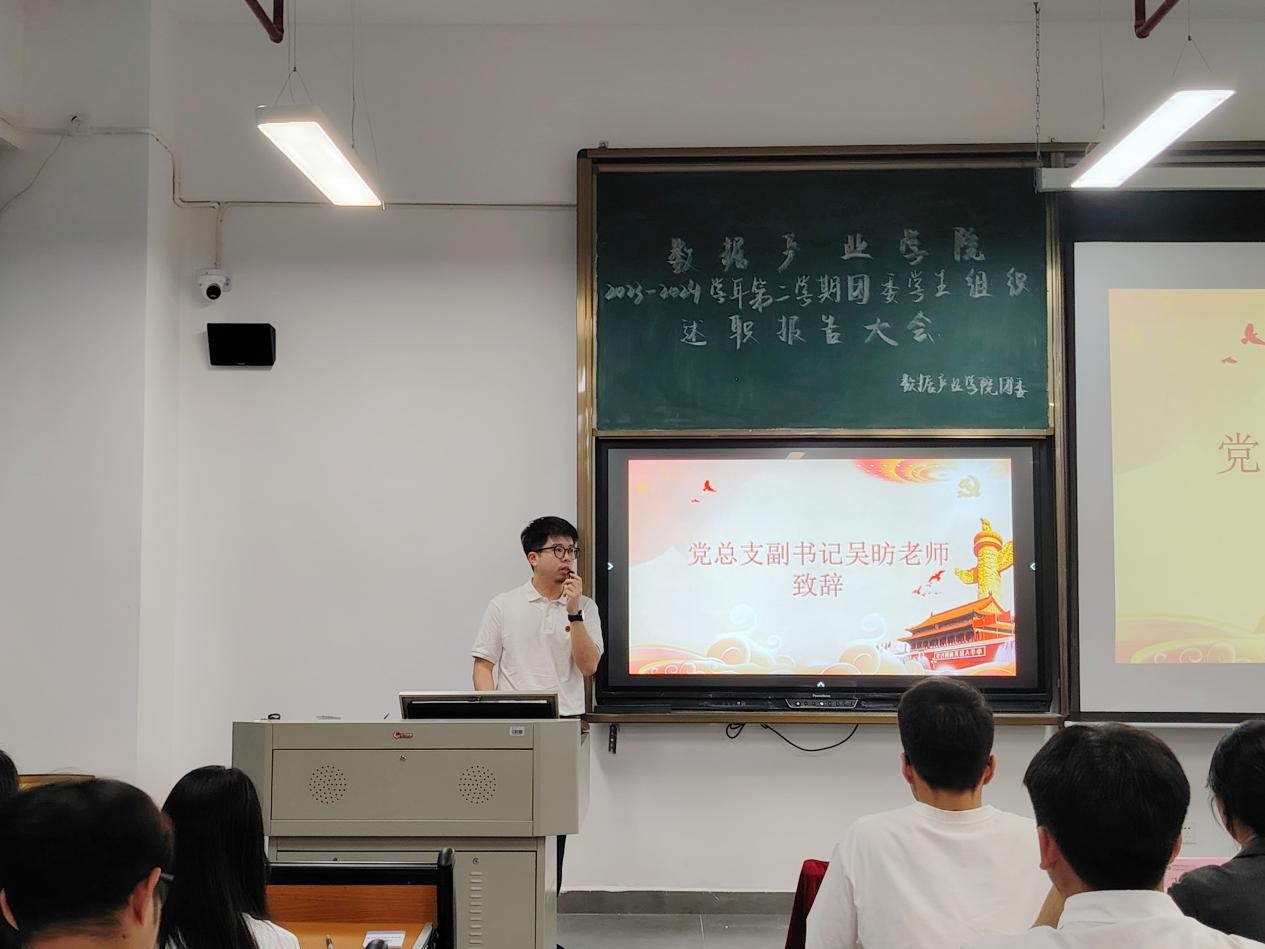 为了系统总结2023-2024学年第二学期团委学生组织工作成效,进一步加强学生干部队伍建设,充分发挥各团委学生组织的积极性和主动性。数据产业学院于6月24日晚上在教学楼A303教室举行团委学生组织述职大会,党总支副书记吴昉,团委书记张梦颖,学生党支部书记陈萍萍出席本次会议,思政辅导员卓兴涛、林榛桢以及学院团委各学生组织干事参与本次会议。本次会议由李佳奇、马莹同学主持。