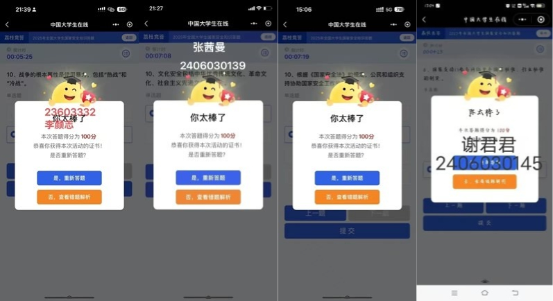 不仅如此,学院还积极动员师生参与“全国大学生国家安全知识答题”活动。在4月10日 - 4月19日期间,大家踊跃通过中国大学生在线网站或微信公众号参与答题。通过答题这种形式,师生们对国家安全知识进行了系统复习和巩固,在校园内营造出“国家安全,人人参与”的浓厚氛围。