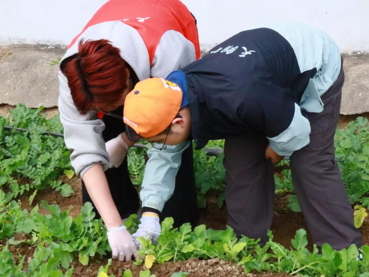 抵达乐菜园后,志愿者们在村民的专业指导下迅速投入工作,分区域展开劳作。在杂草清理区,大家弯腰俯身,细致拔除,力求从根清除,不留隐患,确保健康蔬菜能充分吸收土壤养分;在弱株摘除区,队员们认真辨识,精准区分并小心移除生长不良的植株,避免其继续消耗水肥资源,为壮苗腾出充足的生长空间。