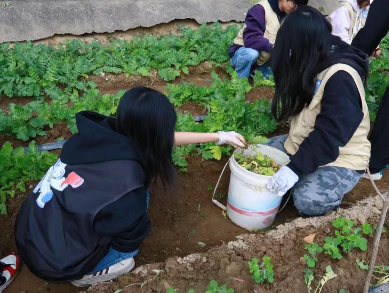 活动前期,数据产业学院青年志愿者团队与百户村村民细致对接,深入了解了乐菜园冬季管护的关键痛点:杂草争夺养分、弱株消耗资源,直接影响蔬菜正常生长。针对此,志愿者们提前学习了冬季田间管护知识,明确了杂草清理的标准与弱株辨识的要点。同时,团队备齐手套、收集桶等工具,并制定分组协作方案,确保活动高效有序开展。