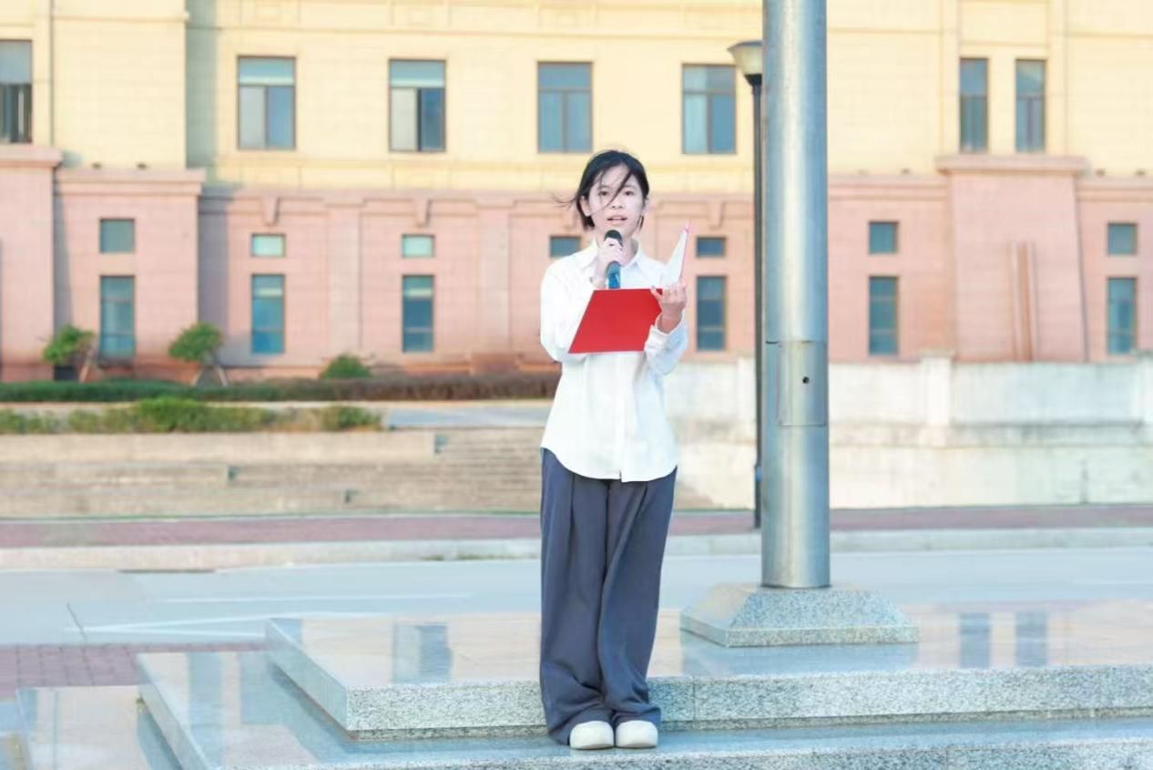 升旗仪式后,2024级学生代表郑林婧走上台前,以《挺膺担当正青春,奋斗不负新时代》为题发表国旗下讲话号召同学们以青春之姿扛起时代重任,既要做理想信念的坚守者,将个人理想融入国家发展大局;也要做勤学笃行的实干者,在课堂与实验室中锤炼过硬本领;更要做创新突破的开拓者,以敢为人先的锐气为数字中国建设注入青春动能。