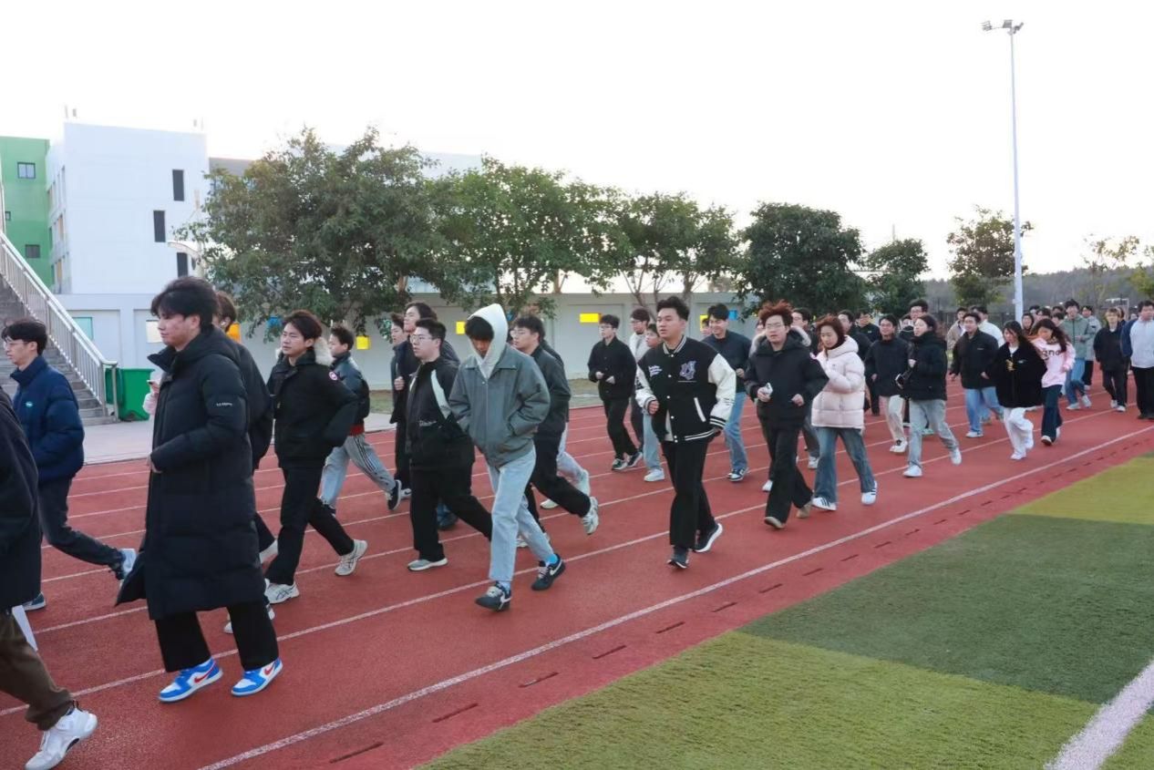 升旗仪式尾声,学院有序组织学生开展晨跑活动。阳光透过枝叶洒下斑驳的光影,映照着同学们坚定的脸庞。整齐的队伍如同一条流动的彩带,轻快的步伐踏出青春的节拍。大家在奔跑中锤炼坚韧的意志,在互助中凝聚温暖的力量,用少年独有的朝气与热情,点亮了整个校园的清晨。