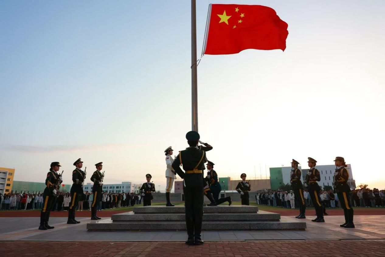 伴随着激昂雄壮的《义勇军进行曲》,护旗手们迈着铿锵坚定的步伐走向旗台,鲜艳的五星红旗在全场观众的注视中冉冉升起,飘扬在广场的上空。那一刻,炽热的家国情怀在每个人的心中翻涌,奋进的信念与担当的力量油然而生。