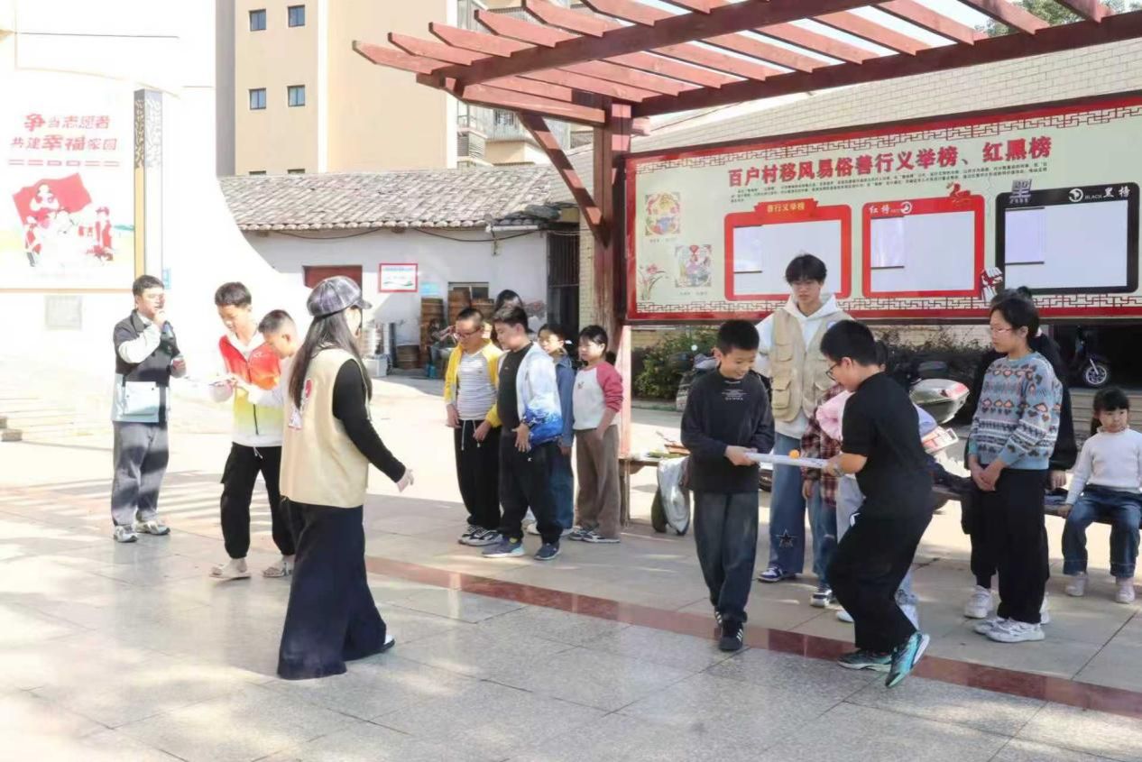 活动伊始,室内分享环节有序开展。百户村社工将历次活动中的暖心瞬间、协作技巧与成长感悟娓娓道来。孩子们围坐成圈凝神聆听,不时举手提问,或与身旁志愿者低声交流。那些在趣味挑战中磨练的勇气,在团队协作中习得的倾听之道,在此刻凝聚为具象的成长体悟。投影幕布上,过往活动影像徐徐播放,这场分享不仅是经验的传递,更是数据产业学院志愿者与孩子们之间双向奔赴、共同成长的情感共鸣。