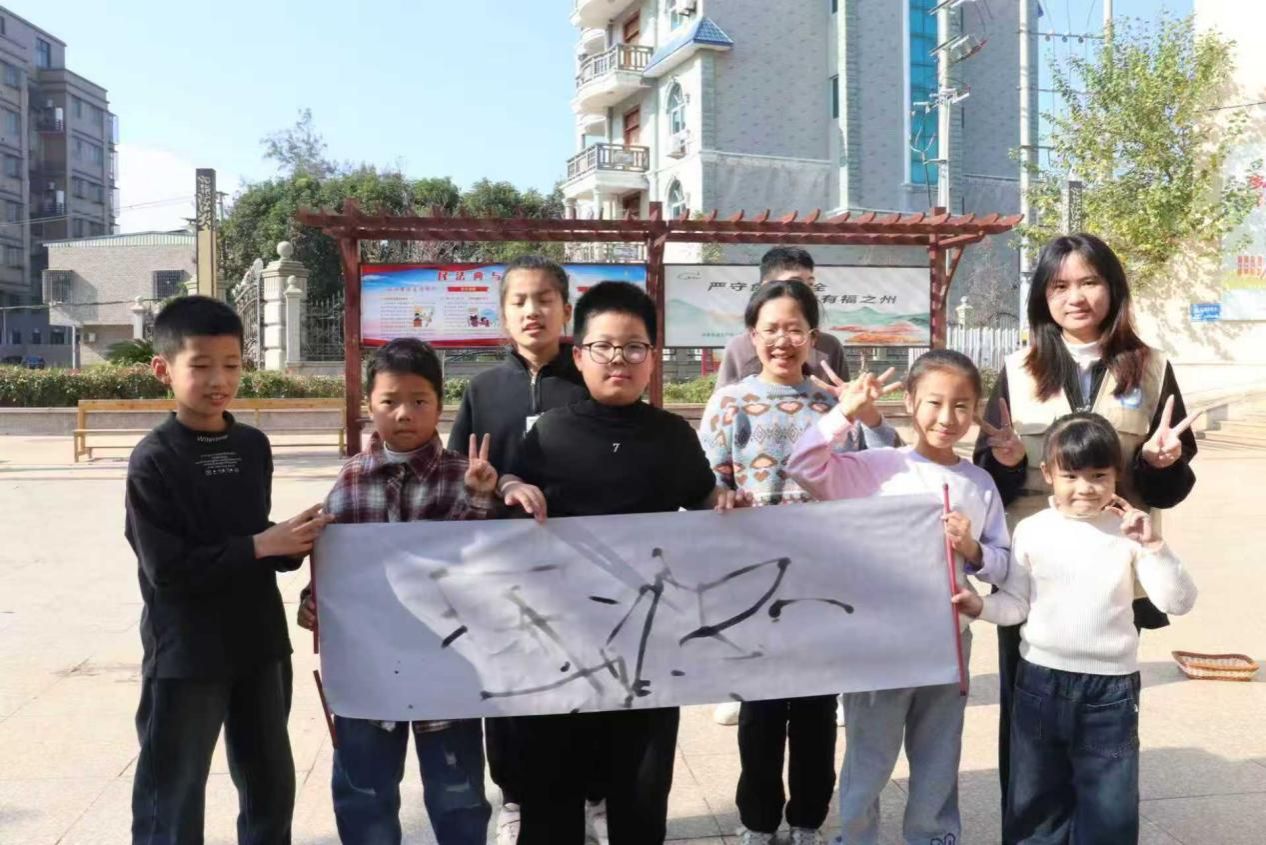 匠心独具的“合力写字”环节,将活动氛围推向高潮。众人牵拉巨笔绳索,在长卷上共同勾勒线条。笔触虽无预设轮廓,却在默契配合中交织成独一无二的图案。当大家一同举起绘满奇思的长卷合影时,暖阳洒落,定格下协作的美好瞬间。温情满满的“优点轰炸”环节更添暖意,志愿者与孩子们用便利贴写下彼此的闪光点,贴于对方肩头。一张张赞美贴纸,真挚话语化作冬日暖流,让彼此的联结愈发紧密。