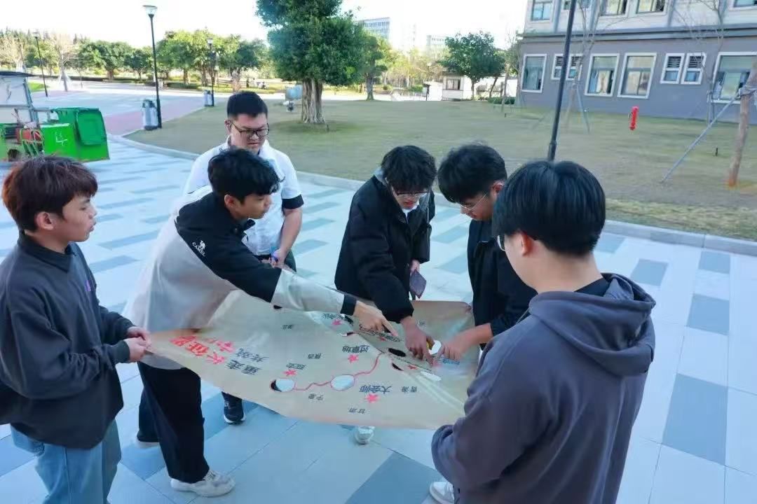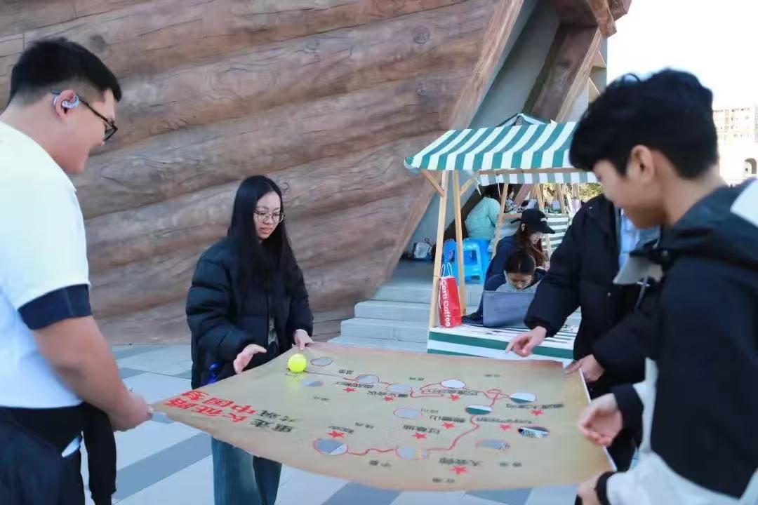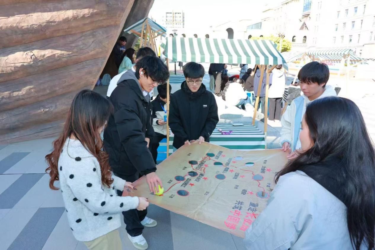 在“重走长征路”的活动中,同学们四人一组攥紧地图,合力操控网球循着长征轨迹奔赴延安。他们在协作中感受长征的艰辛,在网球落向指定城市的瞬间,读懂革命先辈的坚守。一枚枚印章不仅是挑战成功的见证,更是红色基因在青年心中的扎根,爱国情怀化作指尖的默契,凝成青春对长征精神的传承。