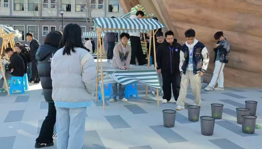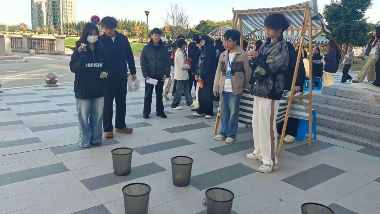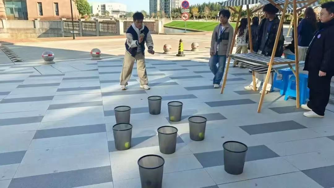 在掷送“军粮”活动中,同学们仿佛化身穿梭回烽火岁月的送粮战士,手中沙包成了维系根据地的军粮。三次投掷的机会,是战场分秒必争的考验,瞄准不同根据地投送,是革命征程里精准的使命担当。每一次出手,都是对先辈保障后勤、浴血支援的致敬,投中的不仅是桶身,更是对红色初心的传承。