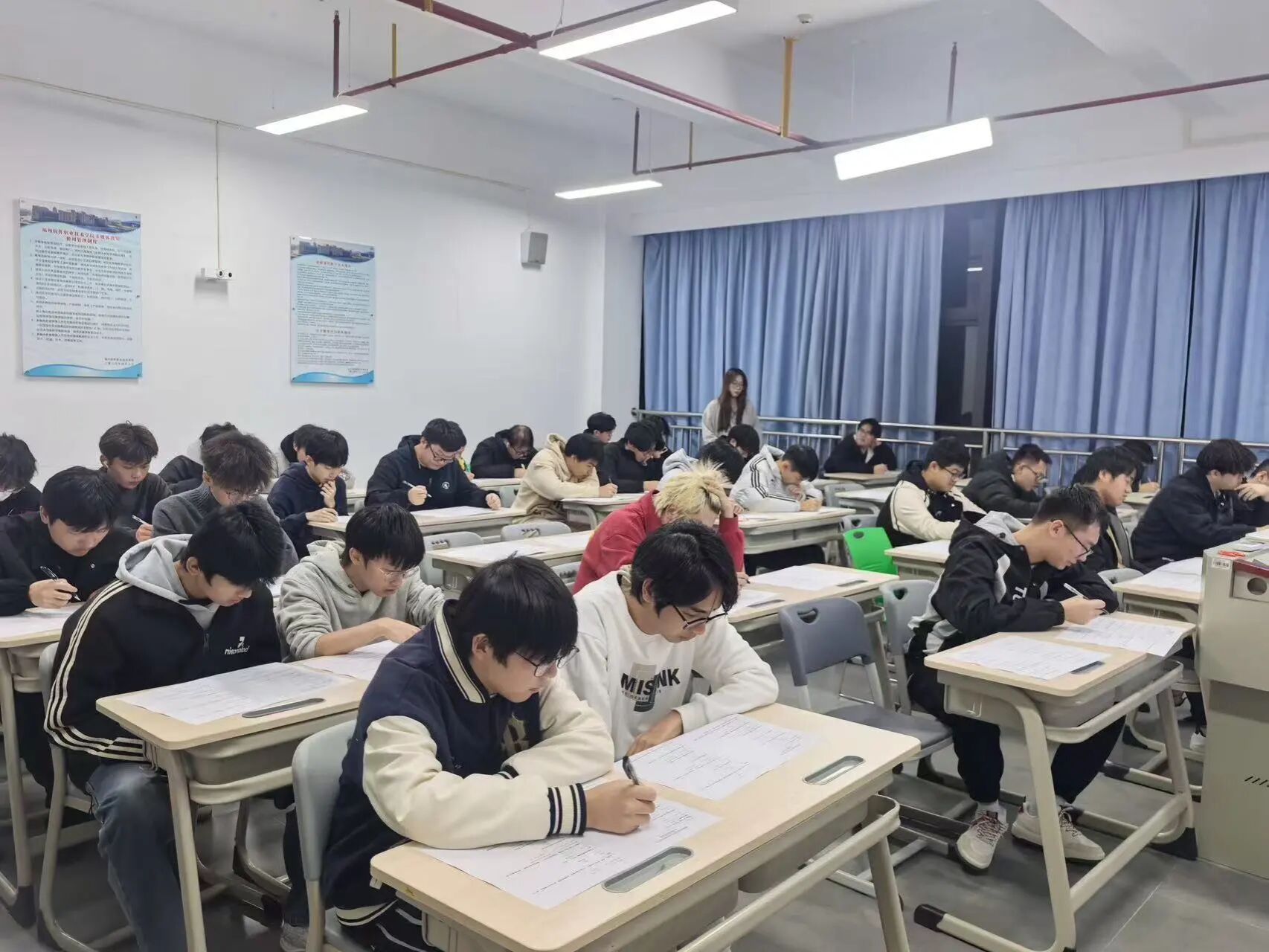考场上,监考人员恪尽职守、认真巡视,每一位同学都全神贯注、从容作答,考风考纪严谨有序。