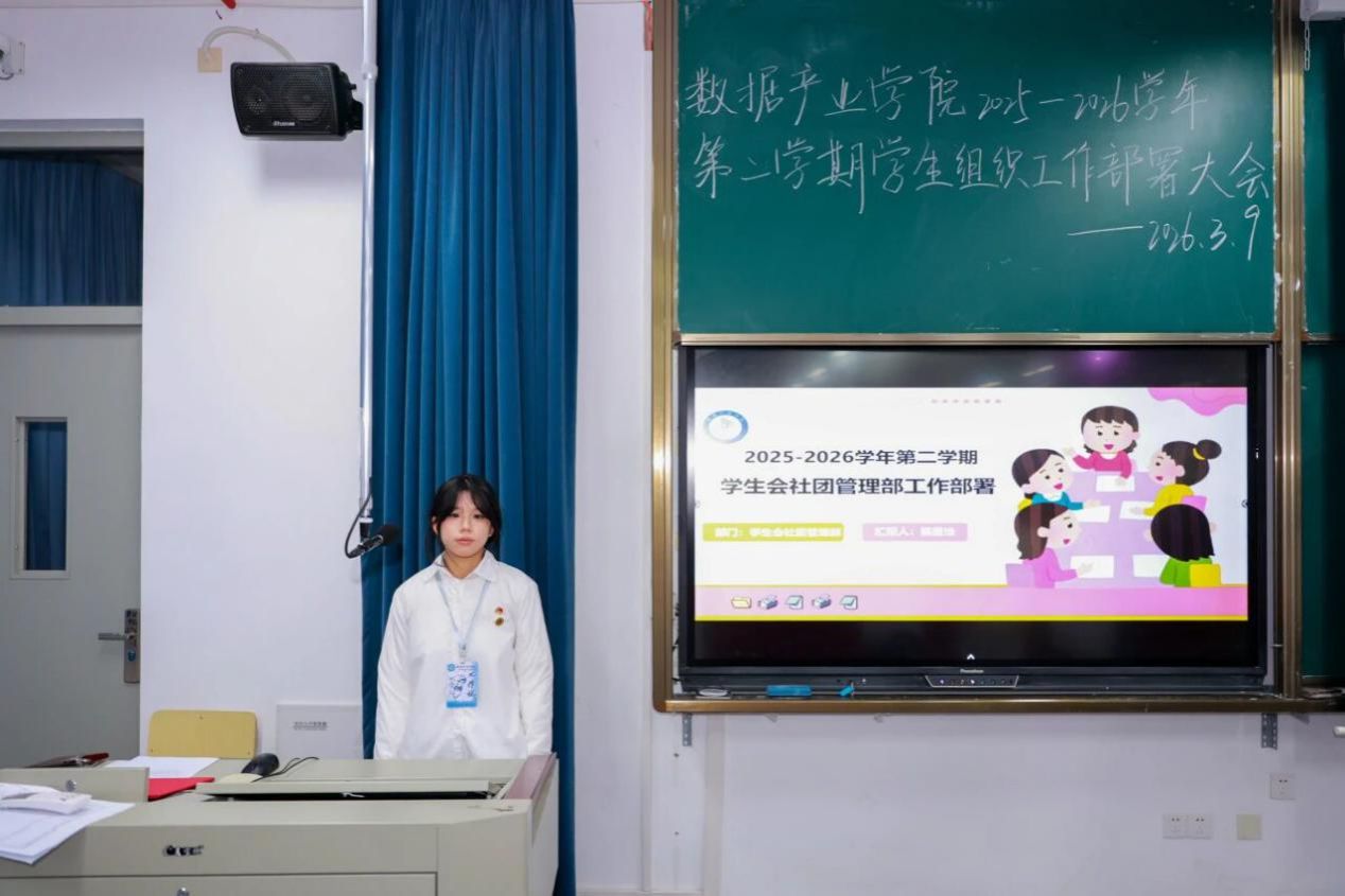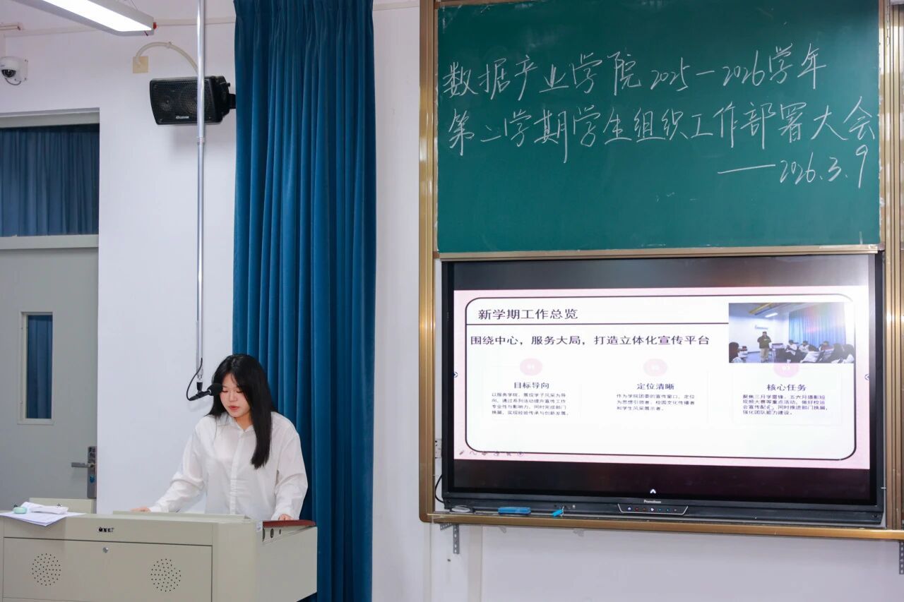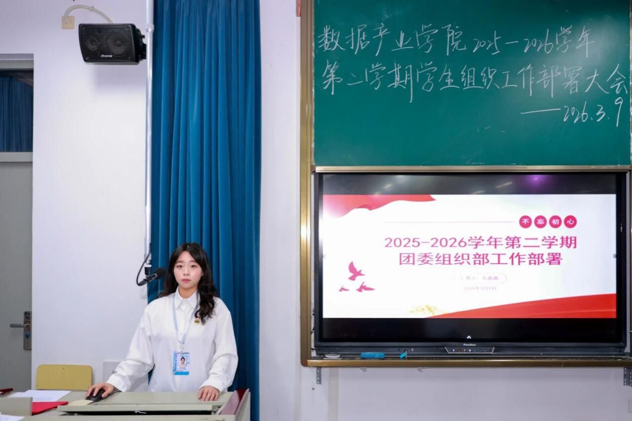 新学期,新起点,新征程。为进一步明确本学期部门工作方向,凝聚团队力量,提升工作效能,2026年3月9日数据产业学院在教学楼D507教室召开新学期部门工作部署会议。数据产业学院党总支副书记王超、团委书记王雨茜、学生党支部书记陈萍萍出席此次会议,全体辅导员及全院团委学生组织干部共同参会,会议由王晨凯同学主持。