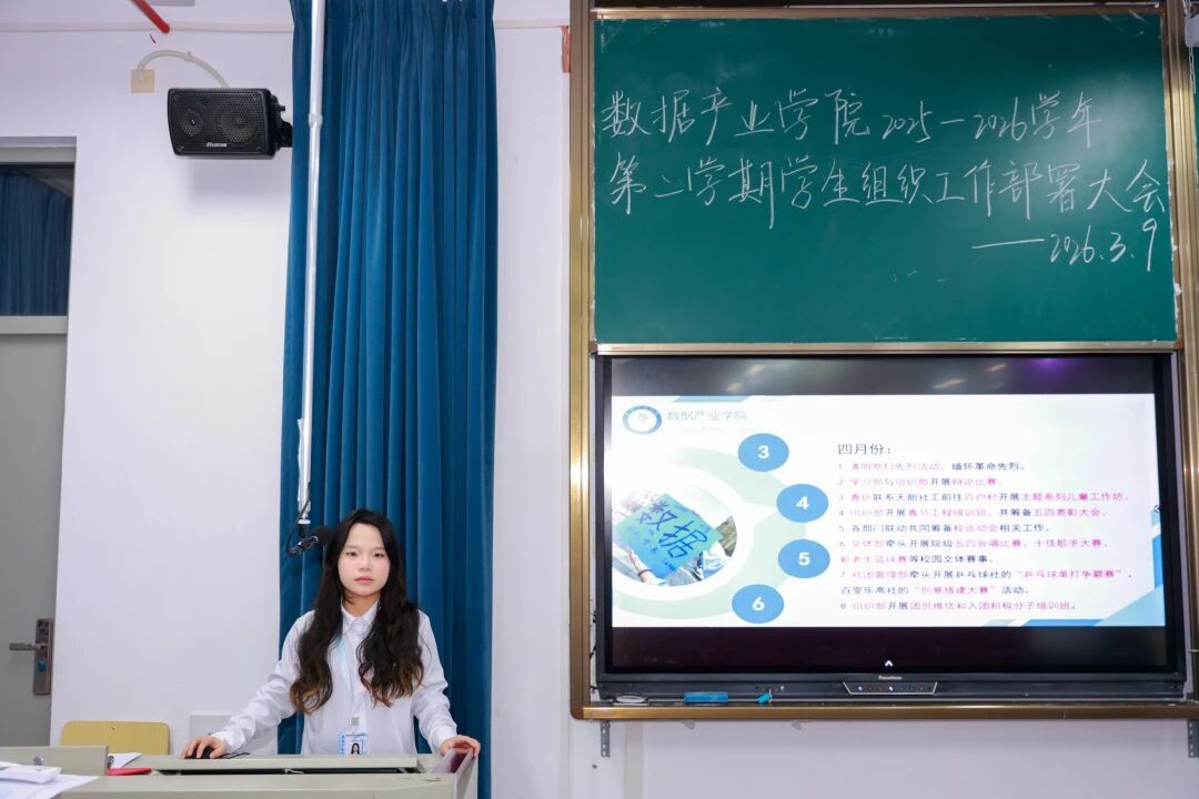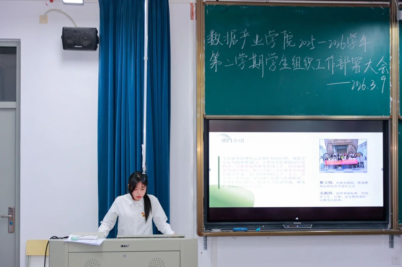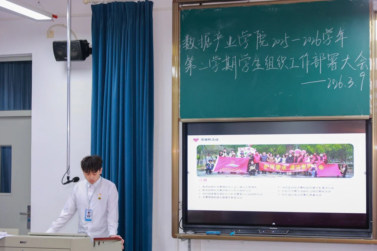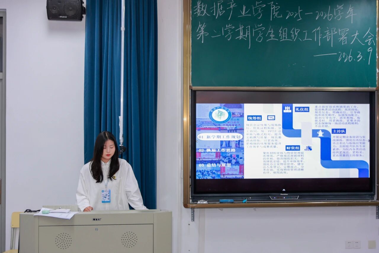 新学期,新起点,新征程。为进一步明确本学期部门工作方向,凝聚团队力量,提升工作效能,2026年3月9日数据产业学院在教学楼D507教室召开新学期部门工作部署会议。数据产业学院党总支副书记王超、团委书记王雨茜、学生党支部书记陈萍萍出席此次会议,全体辅导员及全院团委学生组织干部共同参会,会议由王晨凯同学主持。