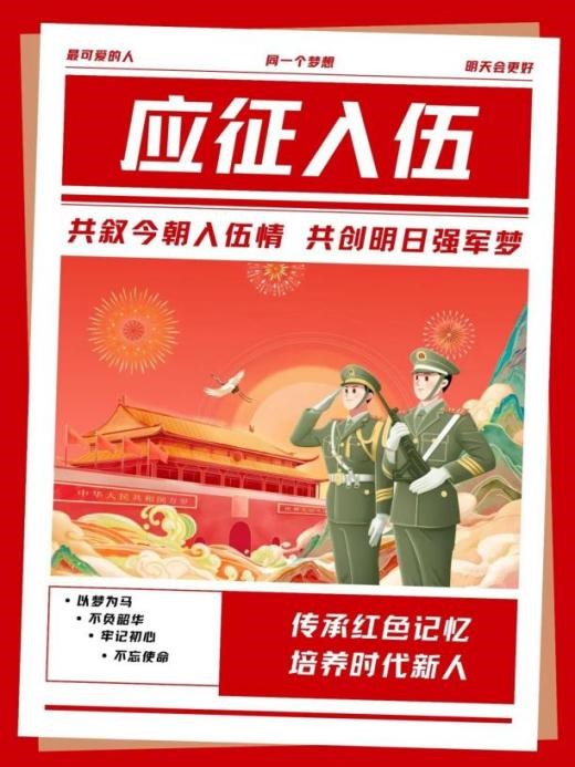 为营造我院入伍光荣、拥军优属的浓郁氛围,致敬“最可爱的人”,数据产业学院在征兵季举办了大学生入伍宣传活动。以下是一些同学们精心设计的宣传海报以及老兵寄语,让我们一同欣赏吧!