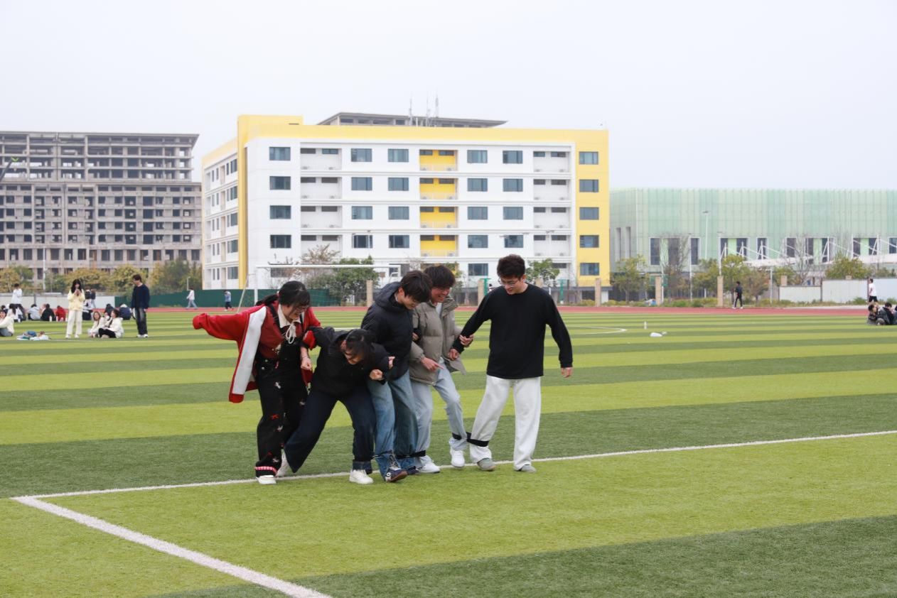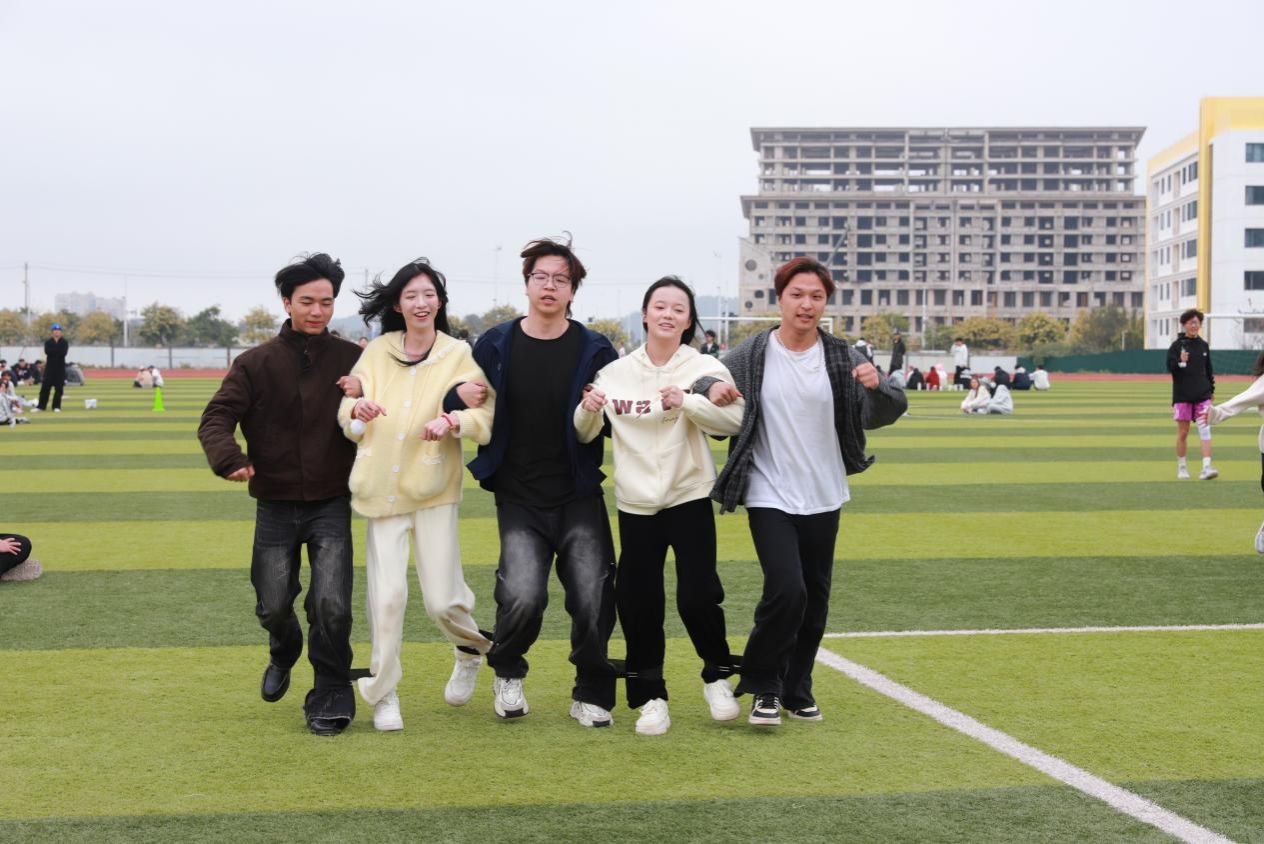 与五人六足相映成趣,五人五足同样是团队协作的经典项目。五位队员并肩而立,步调一致、节奏统一,向着终点全力进发。没有多余的牵绊,只有纯粹的默契与配合。大家目光向前、步伐坚定,在并肩奔跑中凝聚力量,在欢声笑语中收获友谊与成长。