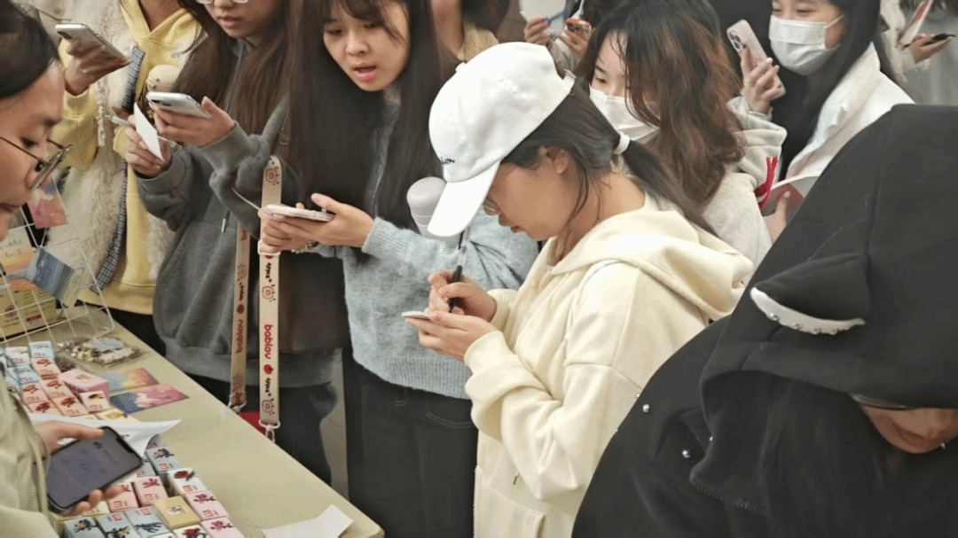 完成祝福书写后,同学们围在桌前认真挑选心仪的积木,为自己的春日创作攒满灵感。眼里满是期待与雀跃。工作人员在一旁耐心引导,为大家介绍不同积木的创意玩法,现场欢声笑语不断,满是轻松治愈的氛围。