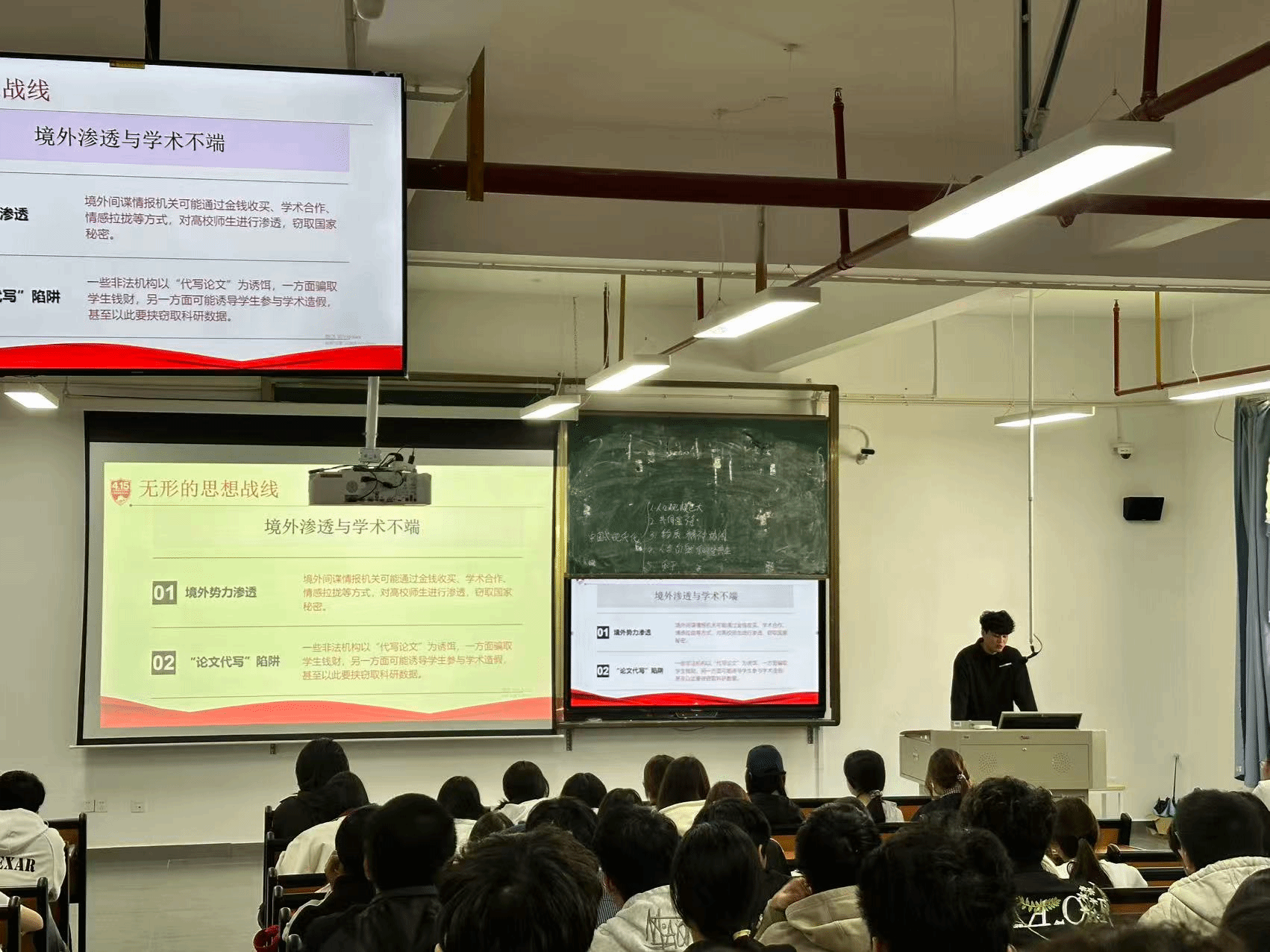班会围绕国家安全相关法律法规、总体国家安全观核心要义、网络安全、数据安全、反间谍防范等重点内容展开。各专业辅导员通过政策解读、案例分析、视频学习等形式,系统讲解国家安全涵盖的政治安全、经济安全、网络安全、科技安全等多个领域,结合数据产业专业特点,重点强调数据安全、信息保密、网络行为规范等现实要求,提醒同学们警惕网络陷阱、严守保密纪律、自觉抵制不良信息。