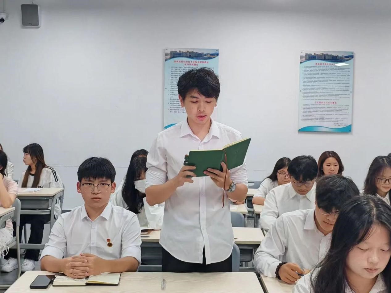 朱锐涛同学表示,伟大抗战精神不仅是历史的精神遗产,更是学生干部锤炼品格、履职尽责的行动指南。作为学生干部,当以“天下兴亡、匹夫有责”的爱国情怀引领思想,把服务同学、建设集体的担当扛在肩上,像抗战先辈守护家国那样,在学风建设、活动组织中践行责任,遇到难题不退缩、碰到矛盾纠纷敢担当。