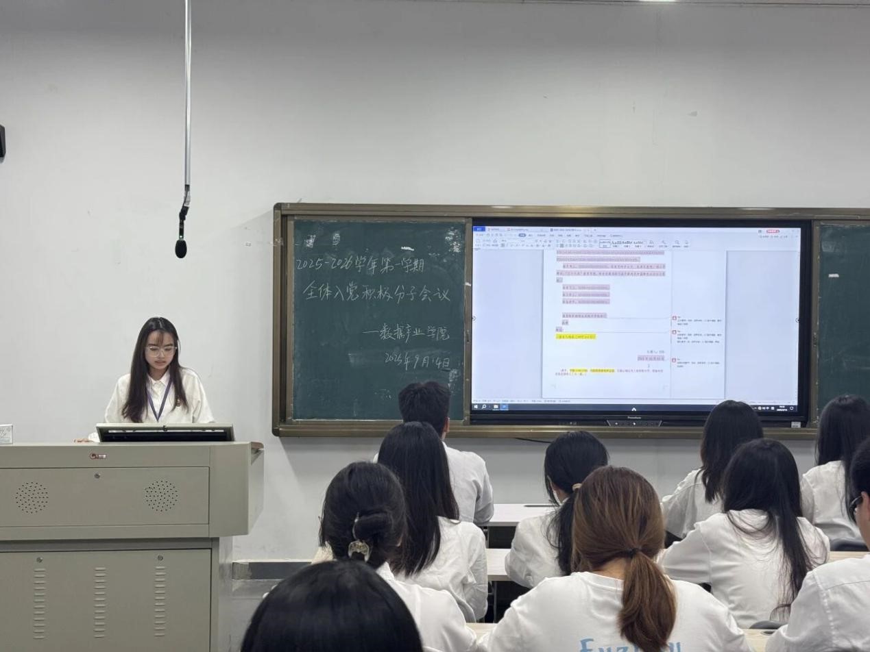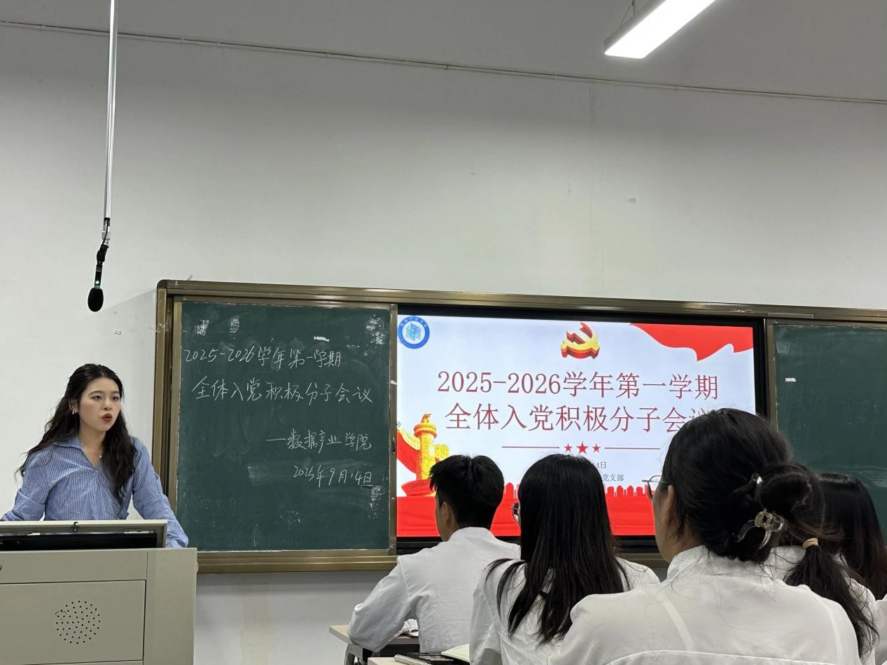 为深刻把握习近平新时代中国特色社会主义思想的核心要义与实践要求,切实提升入党积极分子的政治觉悟、思想水平和党性修养,数据产业学院于9月15日在教学楼C305开展2025-2026学年第一学期全体入党积极分子会议,数据产业学院学生党支部书记陈萍萍出席本次会议,我院全体入党积极分子共同参加。