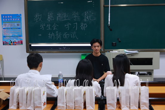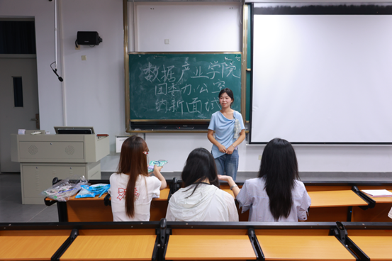 金风送爽,丹桂飘香。为全面加强数据产业学院团委组织建设,进一步提升学院学生工作的活力与效能,同时为2025级大一新生搭建一个学习新技能、展示才华、锻炼能力、服务同学的广阔平台,2025年9月17日晚,数据产业学院于教学楼进行纳新面试工作。
