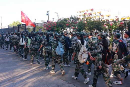 为了检验军训阶段性成果,进一步磨砺新生意志、凝聚集体力量,9月24日下午,数据产业学院全体教官与参训学生齐聚操场,一场充满挑战与成长的军训拉练正式启幕。迷彩身影集结成阵,嘹亮口号响彻校园,共同书写属于青春的热血篇章。