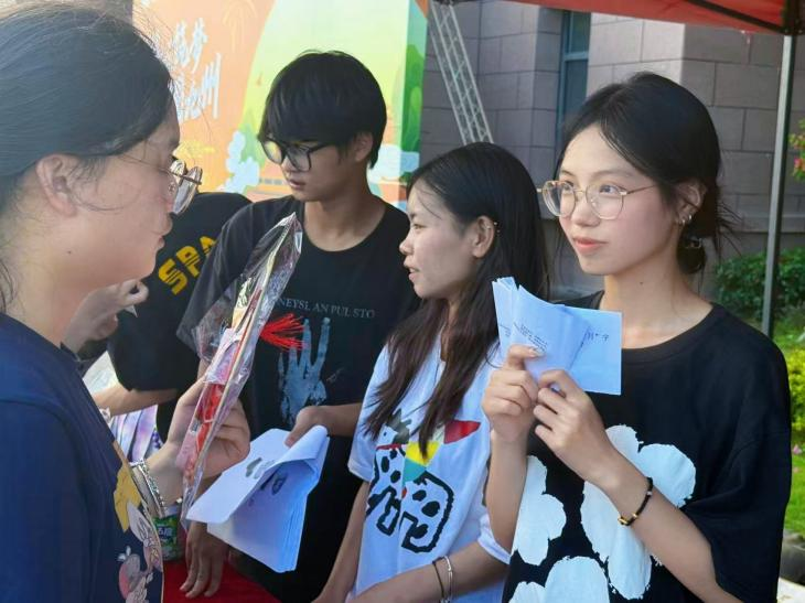 前来游玩的同学们络绎不绝,有序地参与活动,认真地查看题目,并积极解题,一旁的志愿者负责答案对照,成功揭谜的同学则前往礼品区,领取对应的奖品,并获得奖章一枚。本次活动共吸引了500余名同学参加,大家都在“脑筋急转弯”中感受到了传统文化的深刻底蕴,进一步激发了对中华优秀传统文化的热爱和传承之心。