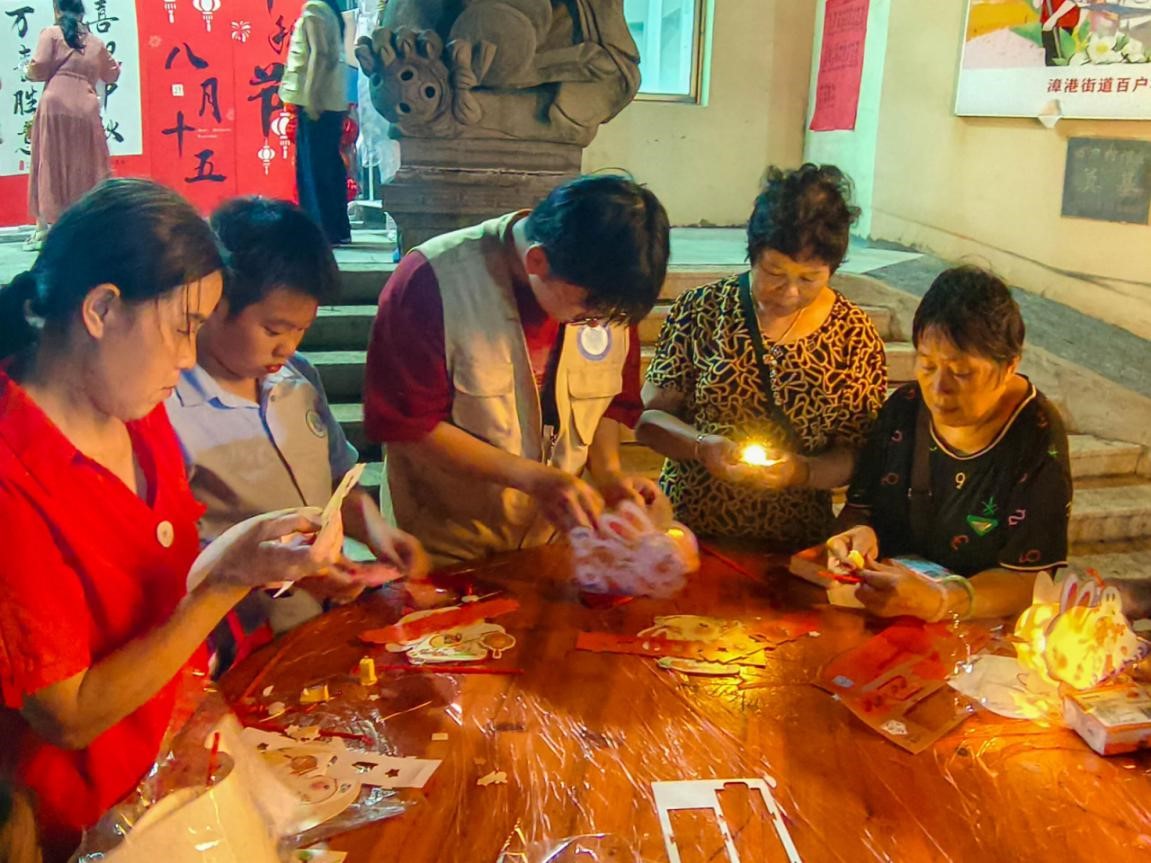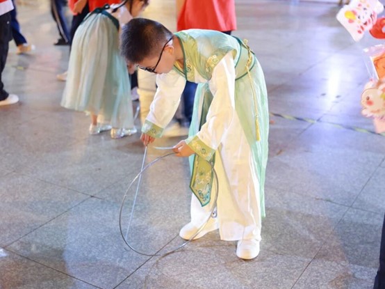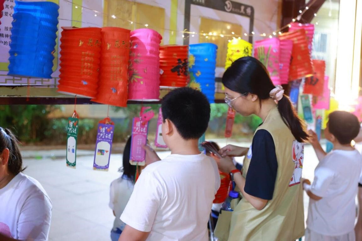 猜灯谜区域,五彩灯谜纸条整齐悬挂,村民们或凝神思考,或热烈讨论,猜中谜底时脸上洋溢着满满的成就感;汉服体验区人气火爆,孩子们穿上典雅汉服,在镜头前留下了一张张充满传统韵味的中秋纪念。手工体验与DIY冰皮月饼区作为活动核心板块,吸引了众多村民驻足参与。大家围坐一起,发挥创意完成手工作品,并亲手制作冰皮月饼,将对佳节的美好祝福揉进每一道工序中。