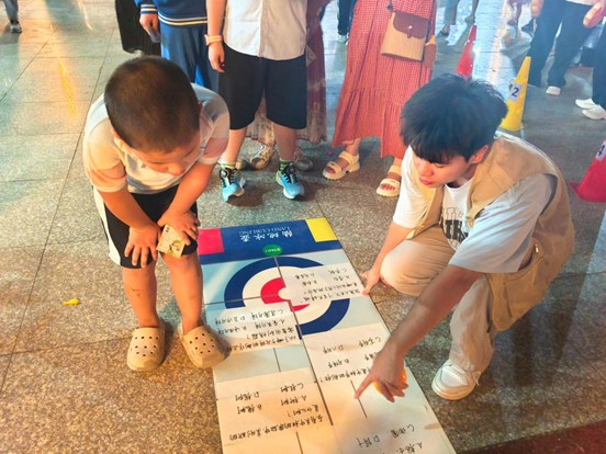 随着村民们陆续到来,活动正式拉开序幕,百户村礼堂内迅速洋溢着浓浓的节日气息。本次活动创新采用“集章兑换”机制,参与者通过完成各摊位的互动挑战收集印章,集满规定数量后即可兑换手工材料及DIY冰皮月饼体验资格,有效增强了活动的趣味性和参与感。