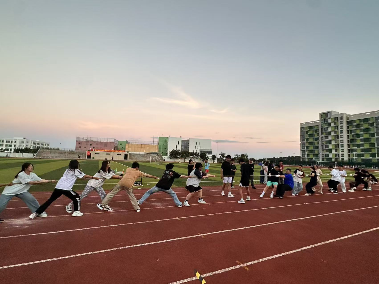 新生拔河比赛以热血沸腾的拔河互动为核心,零门槛的参与形式让陌生同班新生快速投入其中。同组同学紧握绳索的掌心温度、同步发力的默契节奏,成为彼此熟悉的纽带,场边原本安静围观的同学,被现场的热烈氛围感染,纷纷起身呐喊加油,这场活动不仅让新生释放了青春活力,更以拔河绳索为联结,凝聚了同班同学的向心力,为初入校园的班级集体情谊筑牢了坚实根基。