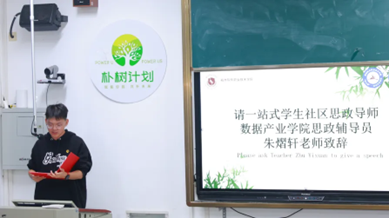 随后,一站式学生社区思政导师、数据产业学院思政辅导员朱熠轩老师为活动致开幕辞。他以“以书为舟,邀游文明之海;以分享为翼,激发思想碰撞;以行动为帆,传承友好力量”三个维度,深刻阐释了本次活动的意义,将现场氛围推向第一个高潮。