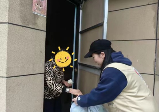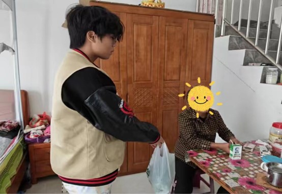 送菜途中,志愿者们逐户登门,温声与村民问询近况。门前,身着花衫的村民闻声探身,志愿者快步上前,将一袋袋新鲜蔬菜轻轻递到他们手中。那一刻,舒展的眉眼里漾开的笑意,如冬日暖阳般动人。屋内,志愿者将菜蔬轻放桌边,落座的阿姨抬头展颜,桌上饭菜的烟火气与这份不期而至的善意交织在一起,勾勒出生活最温软的日常。每一份菜蔬的传递,皆凝聚着细腻心意,让寒冷季节里的人间烟火,愈显温暖动人。