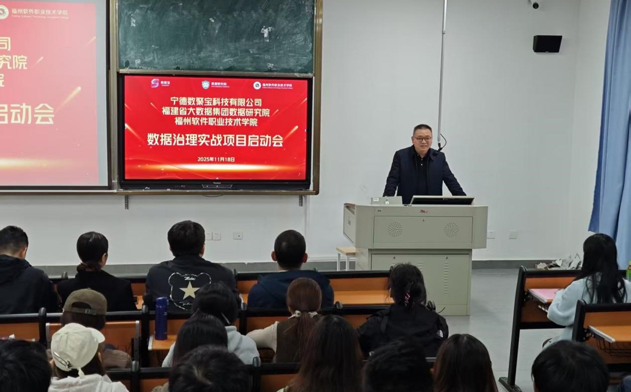 参观活动结束后,数聚宝公司代表与学院产业副院长、指导老师以及企业方领导、同事共同会聚于D302教室,隆重举行数据治理实战项目启动会,为后续即将开展的数据标注全流程培训与指导工作奠定坚实基础。启动会上,数聚宝董事长就企业概况及大数据行业发展前景作了系统介绍;学院产业副院长与参会老师则详细阐述了数据标注工作的内容与意义,并勉励同学们积极投入项目实践,共同推动项目顺利启航。