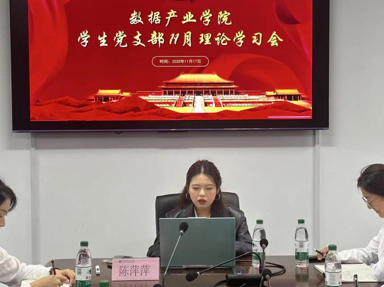 为强化党员队伍的政治引领与思想淬炼,推动党的创新理论入脑入心,以传达学习贯彻习近平总书记在党的二十届四中全会上的重要讲话和全会精神为核心,引导党员精准把握全会提出的新思想、新部署、新要求,进一步凝聚奋进力量、明确行动方向。数据产业学院学生党支部于11月17日在行政楼306党员活动室开展11月政治理论学习会。会议由学生党支部书记陈萍萍主持,数据产业学院学生党支部全体党员同志参与此次会议。