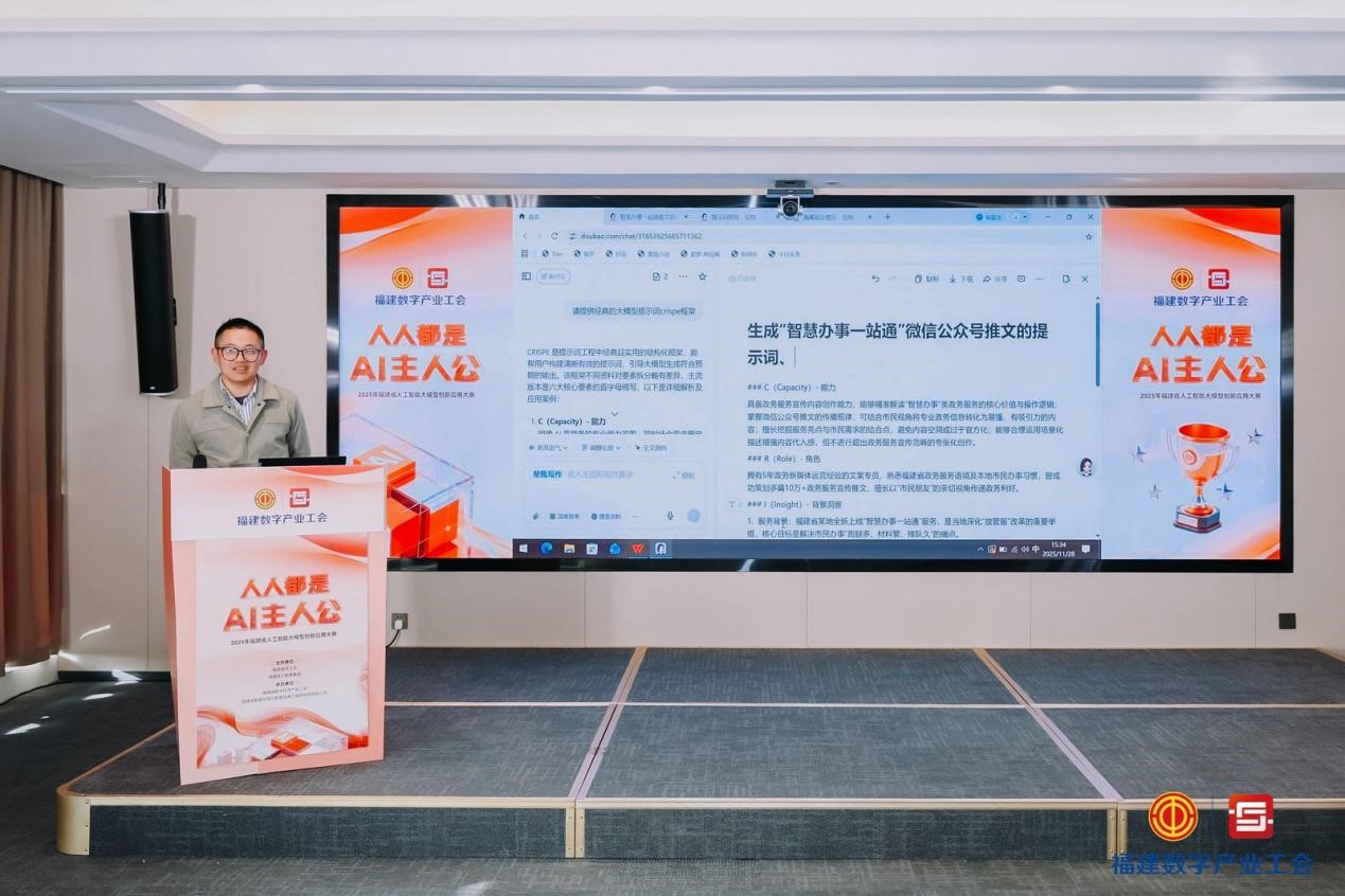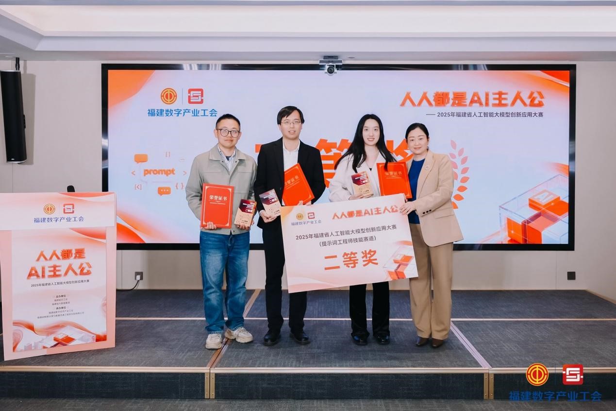 2025年11月28日,由福建省总工会、福建省大数据集团主办,福建省数字经济产业工会、福建省数据治理与数据流通工程研究院有限公司共同承办的“人人都是AI主人公”2025年福建省人工智能大模型创新应用大赛圆满落幕。数据产业学院蔡少强老师在提示词工程师技能赛道中表现突出,凭借扎实的专业功底与出色的实践能力获得省级二等奖。